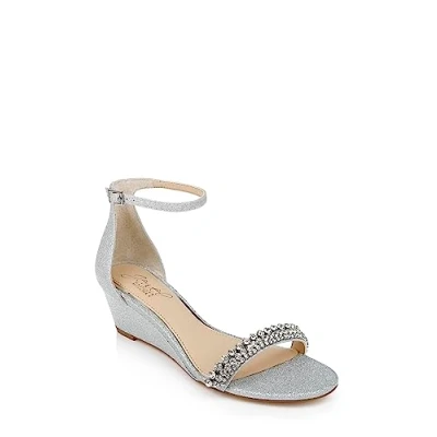 Jewel Badgley Mischka Women's Lora Low Wedge Sandals, Silver, 7 UK