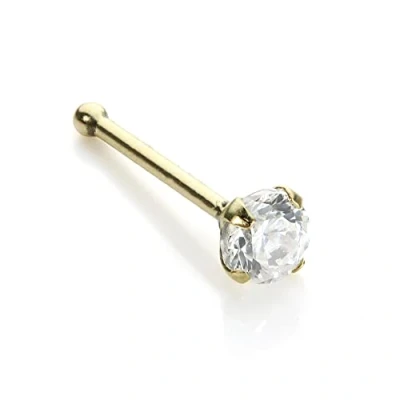 Delicate 2mm cubic zirconia stone set in 9ct gold offers subtle sparkle perfect for everyday wear Lightweight design at just 0.1g ensures comfortable all-day nose stud without irritation Precision 22Ga (0.6mm) gauge and 8mm length tailored for secure and discreet fit in your nose High-quality 9ct gold provides lasting shine and durability while maintaining a refined appearance Presented in a sleek jewellerybox envelope, ideal for gifting or safe storage of your nose stud