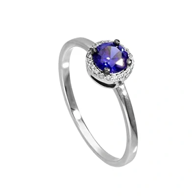 jewellerybox 9ct White Gold & Genuine Sapphire Ring w Clear CZ Crystals Size P