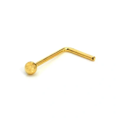 Made from durable 9ct yellow gold, this L-shaped nose stud offers lasting shine and subtle elegance Compact 1.5mm top ball design delivers a delicate, comfortable fit perfect for everyday wear Features a 22 gauge (0.6mm) thickness with a 12mm pin length for secure and easy insertion Lightweight at just 0.1g, ensuring minimal discomfort while maintaining a stylish, refined look Presented in a sleek JewelleryBox envelope, ideal for gifting or safe storage of your nose stud