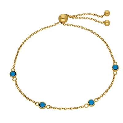 Adjustable length ensures a perfect fit for any wrist, combining comfort with versatile style Features a delicate 1mm belcher chain in gold plated sterling silver marked 925 for quality assurance Embellished with 4mm cubic zirconia stones that add vibrant turquoise color and subtle sparkle Lightweight design at just 2.2g makes it ideal for everyday wear without feeling bulky Made from recycled materials, showcasing commitment to responsible sourcing without compromising elegance