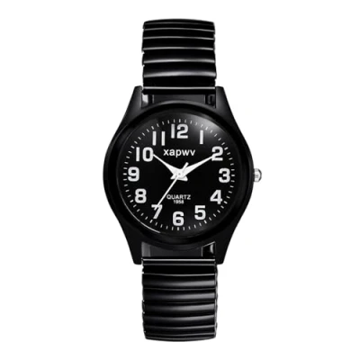 PRECISE QUARTZ WATCH -- Easy-to-Read Blck Dial with white Arabic Numerals. Suitable for middle-aged and old people. Quartz movement provides precise and accurate time keeping. HIGH QUALITY ELASTIC WATCH -- Polished Metal Expansion Band. Stretchable watchband for adjustable size. Easy to put on and take off. Fits wrists size: 6.7"(17cm) - 7.87"(20cm) . Durable premium metal watch case. No more key scratch with the high hardness mineral glass watch face. STYLISH CASUAL WATCH -- Round watch case featuring easy reader dial, simple and classic black bracelet watch ideal for any occasions, indoor or outdoor. Unique design to combine fashion and business casual to bring you the comfort and simplicity. BEST GIFT -- The nice-looking elastic band watch suitable for people in all ages, teenagers, adult, old people. Also, the fashionable bracelet watch is a great gift for Christmas, Birthday, Anniversary, Thanksgiving, Valentine's Day, Fathers Day or other meaningful days. EXCELLENT AFTER-SALE SERVICE -- Every package includes one expansion band watch, a blue velvet gift bag, and an extra battery. On the description page, you can see the instructions for changing the battery. 60-day 100% MONEY BACK or FREE REPLACEMENT guarantee. Please feel free to contact us if you have any questions.