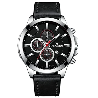 HIGH QUALITY: PU leather strap is much comfortable and wear-resistant. Polish metal watch case. Stainless steel back cover for daily waterproof. Metal buckle closure for convenient use and resizing watchband. Hard glass is scratch resistant. PRECISE TIMING: Cool wrist watch equipped with quartz movement and battery, providing accurate and constant time keeping. Luminous hands makes you know the time even in the dark. Tell time your way with this watch using clear dial and distinct hands. Calendar window for date. The three sub-dials are only for decorative, they are non-functional. STYLISH: This funky calendar watch is for the man looking to find style his own way. Fashion accessory for your daily dressing match. The trendy wrist watch really hits the spot and makes you charming in all occasions. PERFECT GIFT: Unique leather casual watch suitable for men and boys. This cool yet elegant design can easily pair with most costume and suitable for various occasions. It is a great gift choice for Birthday, Christmas, Anniversary, Fathers Day, etc. PURCHASE WITHOUT WORRY: Package includes a watch, a chain, a gift bag and a backup battery. If the watch does not work when received, you can try to change a battery, as it is possible that the battery dead. We offer 90-day 100% MONEY BACK or FREE REPLACEMENT, Please feel free to contact us if you have any question or problem.