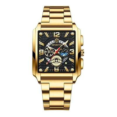 HIGH QUALITY WRISTWATCH: Polished Metal strap is much comfortable and wear-resistant. Stainless steel back cover for 30M waterproof. Push-button-clasp for convenient use, easy taking on or off the watch. Hard glass is scratch resistant. PRECISE QUARTZ WATCH: Classic watch equipped with quartz movement and battery for accurate and constant time keeping. Tell time your way with this watch using clear dial and distinct hands. Date is displayed with the calendar window. Luminous hands for seeing time even in the dark. Please note that the 3 sub-dials are only for decorative, they are non-functional. PERSONALIZE YOUR STYLE: Analog dial designed with Arabic numerals and cool skeletone sub-dials, the watch is so cool. This vintage watch is designed for the men looking to find style her own way, or keep it cool and classic. PERFECT GIFT: Trendy dressing watch can easily pair with most costume and suitable for various occasions, party, shopping and meeting. It is a great gift choice for Birthday, Christmas, Anniversary, Valentine’s Day, etc. PURCHASE WITHOUT WORRY: Package includes a watch, a gift bag and a backup battery. If the watch does not work when received, you can try to change a battery, as it is possible that the battery dead. We offer 90-day 100% MONEY BACK or FREE REPLACEMENT, Please feel free to contact us if you have any question or problem.