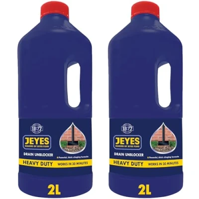 Jeyes Drain Unblocker (2 x 2L) Outdoor Liquid Heavy Duty Dissolves Grease, Hair and Food Waste Powerful Formula Works in 30 Minutes Easy to Use, No Dilution