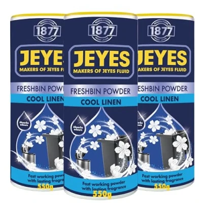 BIN FRESHNESS THAT LASTS – No one wants to be greeted by unpleasant bin smells. Jeyes Freshbin Powder keeps your home or workplace smelling fresher for longer. Just a sprinkle absorbs odours and leaves your bins smelling clean COOL LINEN SCENT – Inspired by the crisp scent of freshly washed laundry, Jeyes dustbin powder infuses your indoor and outdoor bins with an uplifting fragrance that lingers long after the first sprinkle ABSORBS MOISTURE & FLUID LEAKS – Bin bags can leak, and damp conditions only make odours worse. This bin deodoriser and freshener absorbs excess moisture in bin bags and wheelie bins, helping to prevent bad smells and messy clean-ups FAST-ACTING & LONG-LASTING – A quick sprinkle is all it takes for instant freshness that lasts. Simply add it to the base of your kitchen bin or wheelie bin, over bin bags, or directly onto waste to neutralise odours with a cool linen scent THE ORIGINAL OUTDOOR CLEANER – Jeyes has been keeping outdoor spaces clean and protected since 1877. Trusted by generations, with over 145 years' expertise, our products fight dirt, stains, bacteria and germs to make outdoor cleaning easier than ever