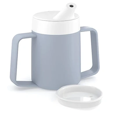 Internal Cone: Keeps drinks warm for longer due to the insulating layer between the cone and the exterior of the cup. Neck Support: Internal cone design prevents over-extension of the neck for the elderly. Easy-to-Hold Handles: Ergonomically designed for a comfortable and secure grip, ideal for individuals with dexterity and mobility issues. Two Lids: Comes with an anti-splash lid and a spouted lid for versatile and convenient use. Food-Grade Plastic: Made from safe and durable materials for everyday use. Microwave Friendly: Easily reheat your beverages when needed.