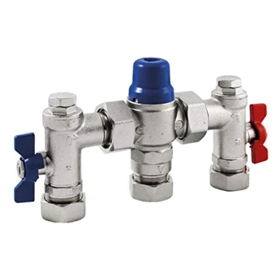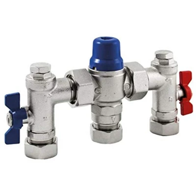 Description: Reliance Valves Easifit Thermostatic Mixing Valve (TMV) 4in1 must be TMV3 & TMV2 accredited, WRAS approved and comply with NHS and HTM04-01-D08 regulations. The TMV must be suitable for BREEAM projects and work to a 10:1 pressure differential. The seals must be Viton and the internal components must be scale resistant. The water inlets must have an isolating valve, check valve, strainers and test port. Connections must be compression style with integrated flat faced unions on all connections. Blends hot and cold water to ensure safe and comfortable water temperature, reducing the risk of accidental injuries and burns. Ultra-compact and lightweight, Easifit is ideal for use in tight spaces Easifit complies with all applicable UK and European performance standards The range is WRAS approved and holds TMV2 and TMV3 certificates The TMV can function at flow rates as low as 1 lpm, the lowest by far in the industry Resistant to the adherence of scale and other system