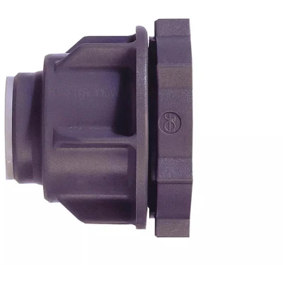 JG Speedfit tank connector push-fit fitting for the connection of plastic or copper pipes to a cold water tank. The tank connector is designed for tanks with a minimum wall thickness of 4mm. Simply push the JG Speedfit tank connector push-fit fitting fully onto the pipe and hand-tighten the connector to the tank. To demount the connection, push the collet towards the body of the push-fit fitting and pull the pipe to release. The push-fit fitting is quicker and easier to install in confined spaces than traditional methods as it eliminates the need for hot works or tools in the loft environment. Designed, manufactured and assembled in the UK. Instant push-fit connection Install and demount in seconds without tools Safe flame-free installation, with no hot works, glue or flux Grip & Seal collet with stainless steel teeth and main O-Ring seal Non-toxic, resists corrosion and no scale build-up Compatible with Speedfit PEX and polybutylene plastic pipe (inserts required) and copper pipe