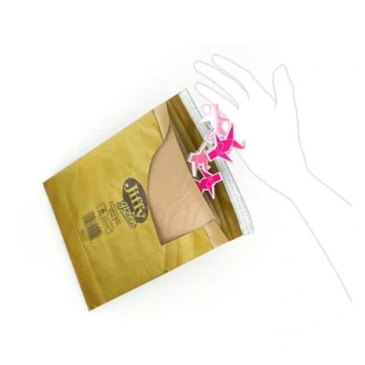 Durable, lightweight padded bags. 100% recycled paper fibre lining. 100% recyclable. Brown Kraft outer paper. Doubled glued bottom flap and no side seams. Strong self seal closure. Size 6: 295 x 458mm. Colour: Gold. Pack of 50.