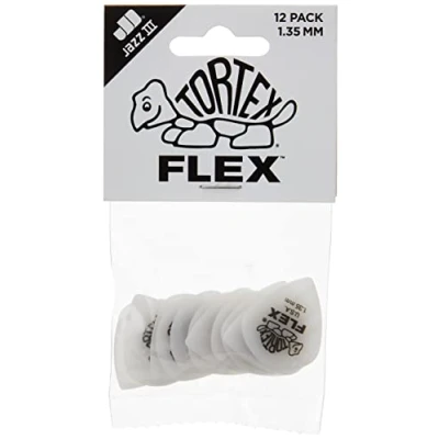 JIM DUNLOP 468P1.35 Tortex Flex Jazz III Guitar Pick, 1.35mm, White 12 Pack