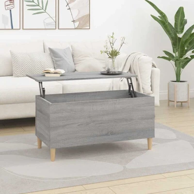 ManoManoGeneral description This Coffee Table in Grey Sonoma is a refined and functional addition to your living space. Its lift-top design allows for versatile use, making it perfect for dining or working comfortably. Technical specifications Colour: Grey Sonoma Material: Engineered wood, solid eucalyptus wood Dimensions: 90 x 44.5 x 45 cm (W x D x H) Features a lift top Installation Each product comes with an assembly manual in the box for easy assembly. Usage The lift-top design allows for a comfortable height for working or dining. The sturdy tabletop is ideal for placing drinks, food, and decorative items. The hidden compartment beneath the rising tabletop provides ample storage space to keep items organized. Other information