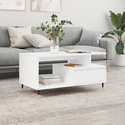 General description Add a touch of elegance to your living room with this stylish coffee table. Made from high-quality engineered wood, it features a smooth surface that is durable, stable, and resistant to moisture. The table is easy to clean with a damp cloth, making it a practical addition to your home. Technical specifications Colour: White Material: Engineered wood, metal Dimensions: 90 x 49 x 45 cm (L x W x H) Assembly required: Yes SKU: 831012 Usage Ample storage space with a drawer to keep essentials organized and within reach. Sturdy tabletop suitable for placing drinks, food, and decorative items. Metal legs provide stability and add a modern touch to your interior. Other information