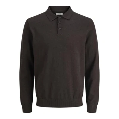 JJ rebel Men's Jrebcallum Knit Polo Neck Ls, Chocolate Cake, M