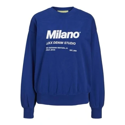 JJXX Women's Jxbeatrice Ls Loose Vint Sweat Noos Sweatshirt, Sodalite Blue/Print: Bright White Milano Print, S