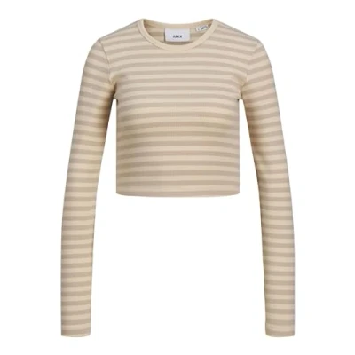 JJXX Women's Jxfeline Str Ls Rib Tee JRS Noos Longsleeve T Shirt, Fog/Stripes: Feather Grey, Large
