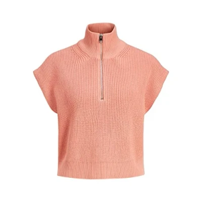 JJXX Women's Jxflorence Twist Half Zip Knit Vest Sweater, Coral Haze, M
