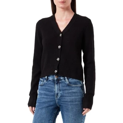 JJXX Women's Jxregina Various Cardigan Knit Sn Sweater, Black/Detail:/Moonbeam Neck Piping, L