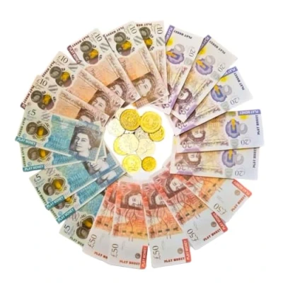 JKG® Pound Sterling Pretend Play Money Notes and Coins for Children Fake UK Currency Toy Banknotes Kids Role Shop Till Bank Cash, Post Office Set School Teach Numeracy