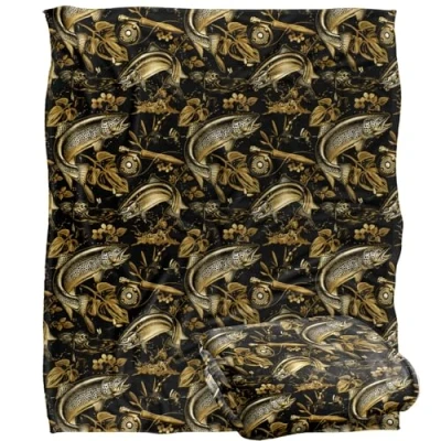 Jl Jp Jq Trout Tiki Fishing Pattern Silky Touch Super Soft Throw Blanket 152 X 127 cm