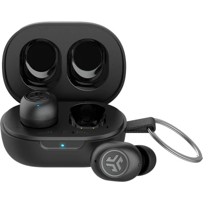 CurrysGood to know - These JLAB wireless earbuds are absolutely teeny, so you can stash them in any pocket- Don't worry, they're easy to keep track of - there's a little keyring on the case- Bluetooth Multipoint is a game-changer because it'll auto-switch between 2 devices- They're small but mighty - IP55 dust and water resistance makes them perfect for April showers- By tapping the earbuds you can cycle through 3 EQ modes to suit your playlist - no app necessary- There's a noise-cancelling mic onboard, so you can take work calls even in the midst of commotion