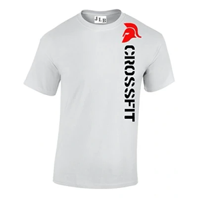 JLB Print Crossfit Spartan Helmet Gym Sports Fan Premium Quality Regular Fit T Shirt Top for Men and Teens White