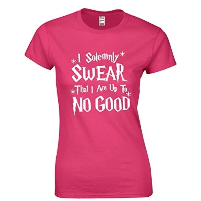 JLB Print I Solemnly Swear That AM up to No Good Wizard Themed Premium Quality Fitted T Shirt Top for Women and Teens Hot Pink