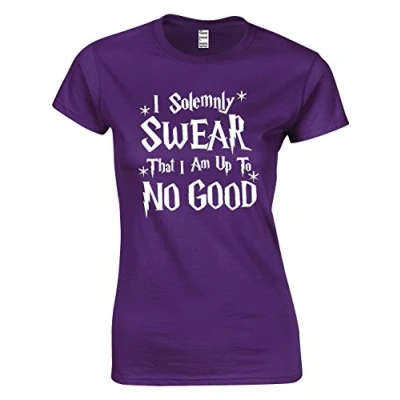 JLB Print I Solemnly Swear That AM up to No Good Wizard Themed Premium Quality Fitted T Shirt Top for Women and Teens Purple