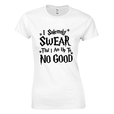 JLB Print I Solemnly Swear That AM up to No Good Wizard Themed Premium Quality Fitted T Shirt Top for Women and Teens White
