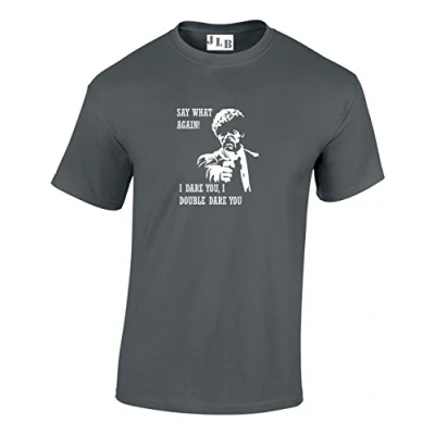 JLB Print SAY What Again. I Dare You Violent Gang Film Inspired Premium Quality Regular Fit T Shirt Top for Men and Teens Charcoal