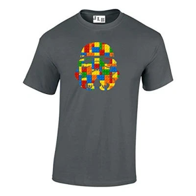 JLB Print Trooper Helmet Bricks Space Wars Sci Fi Movie Film Inspired Premium Quality Regular Fit T Shirt Top for Men and Teens (Charcoal / 2X Large)