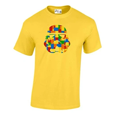 JLB Print Trooper Helmet Bricks Space Wars Sci Fi Movie Film Inspired Premium Quality Regular Fit T Shirt Top for Men and Teens (Daisy/Medium)