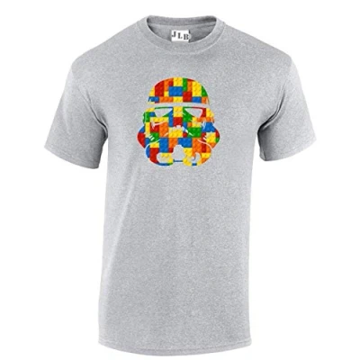 JLB Print Trooper Helmet Bricks Space Wars Sci Fi Movie Film Inspired Premium Quality Regular Fit T Shirt Top for Men and Teens (Grey/Large)