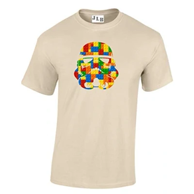 JLB Print Trooper Helmet Bricks Space Wars Sci Fi Movie Film Inspired Premium Quality Regular Fit T Shirt Top for Men and Teens (Natural/Medium)