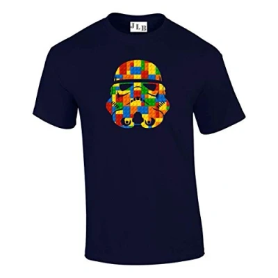 JLB Print Trooper Helmet Bricks Space Wars Sci Fi Movie Film Inspired Premium Quality Regular Fit T Shirt Top for Men and Teens (Navy/Large)