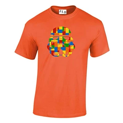 JLB Print Trooper Helmet Bricks Space Wars Sci Fi Movie Film Inspired Premium Quality Regular Fit T Shirt Top for Men and Teens (Orange/Medium)