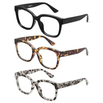 Women's Reading Glasses - Classic square shape fashion frame reading glasses for women with blue light blocking lens and spring hinge. Universal size fits most face shapes. Spring Hinge Design - These eyeglasses with Humanized Ergonomic Design and pattern print lightweight frame to fit any face shape, and won't slip off when worn for a long time. These cute reader glasses will be your great choice and ensure a comfortable fit without uncomfortable pinching. Convenient Set - You will get 3 pairs of reading glasses, 1 microfiber cloth and 1 glasses bag. Great for home, office, or bedside use. Keep a pair at your desk, in your bag, and in your favorite reading spots High definition lenses - High definition clear lenses restore the original color of the object, help you have clear vision, provide the best reading experience, no longer worry about the text is too small to read clearly, relieve eye fatigue and blurred vision. Satisfaction Assurance: If you have any questions with the glasses, please feel free to contact the seller, we will provide you with a satisfactory solution.