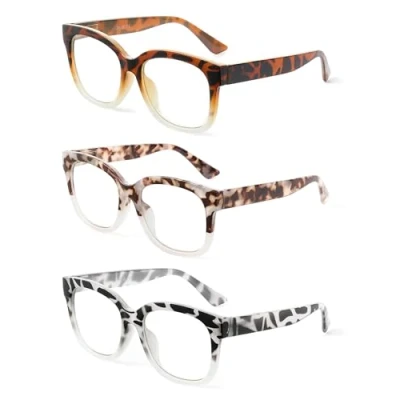 Women's Reading Glasses - Classic square shape fashion frame reading glasses for women with blue light blocking lens and spring hinge. Universal size fits most face shapes. Spring Hinge Design - These eyeglasses with Humanized Ergonomic Design and pattern print lightweight frame to fit any face shape, and won't slip off when worn for a long time. These cute reader glasses will be your great choice and ensure a comfortable fit without uncomfortable pinching. Convenient Set - You will get 3 pairs of reading glasses, 1 microfiber cloth and 1 glasses bag. Great for home, office, or bedside use. Keep a pair at your desk, in your bag, and in your favorite reading spots High definition lenses - High definition clear lenses restore the original color of the object, help you have clear vision, provide the best reading experience, no longer worry about the text is too small to read clearly, relieve eye fatigue and blurred vision. Satisfaction Assurance: If you have any questions with the glasses, please feel free to contact the seller, we will provide you with a satisfactory solution.
