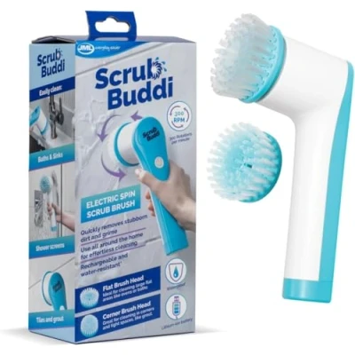 Scrub Buddi - The ultimate electric cleaning brush scrubber that scrubs an astonishing 300 times per minute. Say goodbye to abrasive chemicals and hello to a spotless home with this electric scrubber VERSATILE BRUSH HEADS - The electric brush for cleaning comes with two interchangeable heads a corner brush and flat brush. Whether it's grout cleaner, tile cleaner, or skirting board cleaner, we've got you covered QUICK AND EASY CLEANING - Designed to tackle the toughest messes in your home, from bathroom tile cleaner to kitchen cleaner and even outdoor furniture. With Scrub Buddi, you can blast through dirt, soap scum, and other build-up in seconds CORDLESS AND RECHARGEABLE - This water-resistant electric scrubbing brush has a rechargeable battery. Use it as a bath or shower cleaning brush, or take it outside to clean car wheels, garden furniture, and BBQ stains. JML Products Quality - More than just a bathroom tile cleaner, shower cleaning brush or grout cleaner; it's a cyclone of spinning, scrubbing spotlessness for sinks, showers, and surfaces everywhere