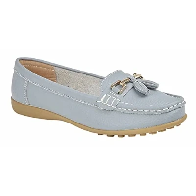 Jo & Joe Ladies Leather Loafer Shoes Plimsole Pumps Womens Flat Baby Blue Size UK 5 EU 38