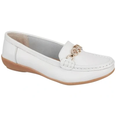 Jo & Joe Ladies Leather Slip On Gold Effect and Diamante Trim Loafers (White, UK Footwear Size System, Adult, Women, Numeric, Medium, 8)