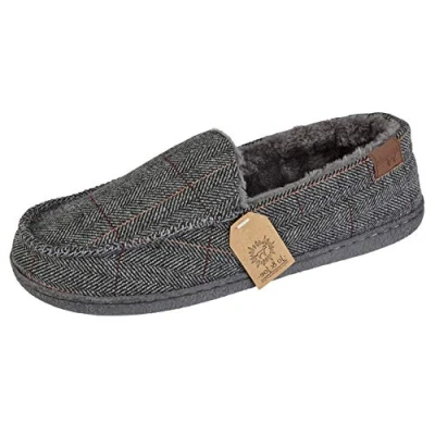 Jo & Joe Mens Faux Suede Slip on Textile Lined Moccasin Slippers Shoes (Grey Tweed UK 12)