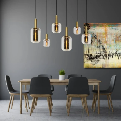 The Joanet hanging light encapsulates elegance and functionality, making it an ideal centerpiece for any living or dining room. This stunning pendant light boasts six beautifully crafted glass light points that gracefully dangle from a sleek mounting plate, offering a dynamic visual appeal that enhances the aesthetic of your space.