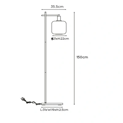 The dimensions of the Joanet lamp are as follows: length of 35.5 cm, width of 31 cm, and height of 150 cm. It is backed by a 2-year warranty on the fixture, allowing you to invest in quality with peace of mind.