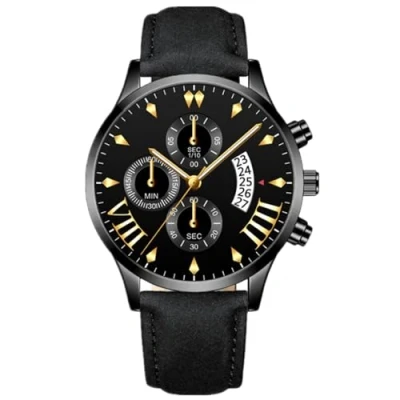 JOATVEE Men's Watches Leather Strap Chronograph Classic Analogue Date Waterproof Quartz Watch Gift For Men, a, Strap.