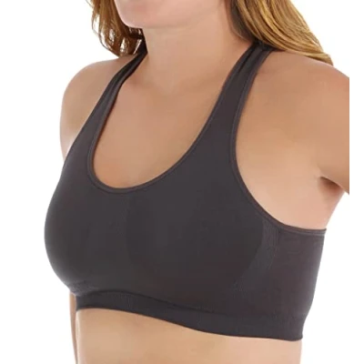 Jockey Women's Bras Mid Impact Removable Cup Seamless Sports Bra, Solid Charcoal, S