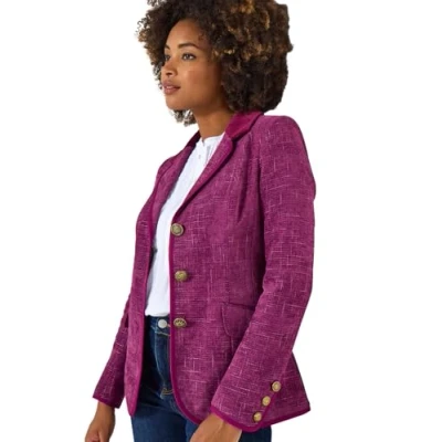 Joe Browns Women's Checked Single Breasted Jacket, Plum, 16