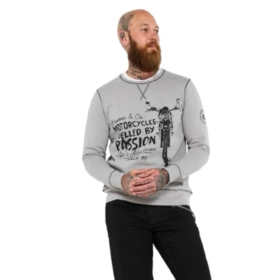 Casual grey sweatshirt Classic crew neck Long sleeves Motorbike graphic and print on left sleeve Tonal stitching