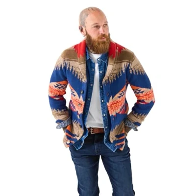 Joe Browns Men's Aztec Knit Pattern Wild Side Shawl Neck Cardigan Sweater, Multi, M