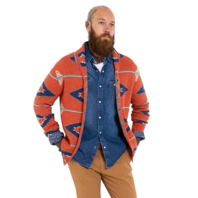 Joe Browns Men's Aztec Knitted Shawl Neck Cardigan, Regular, Orange, UK XXL